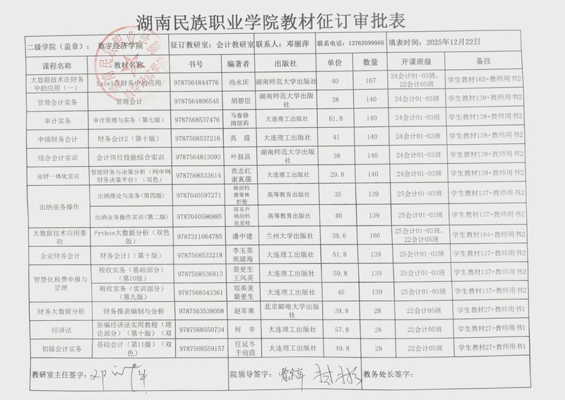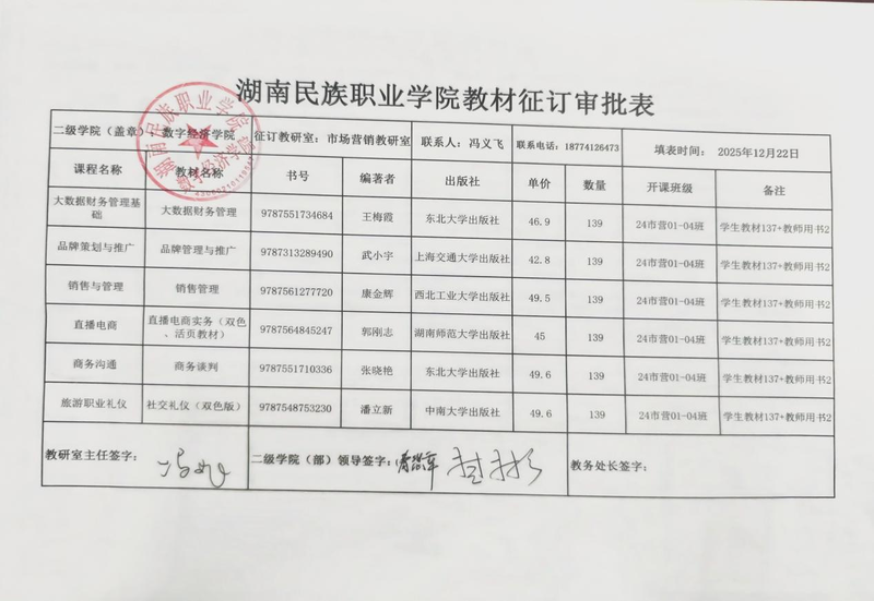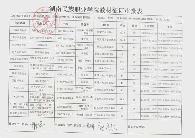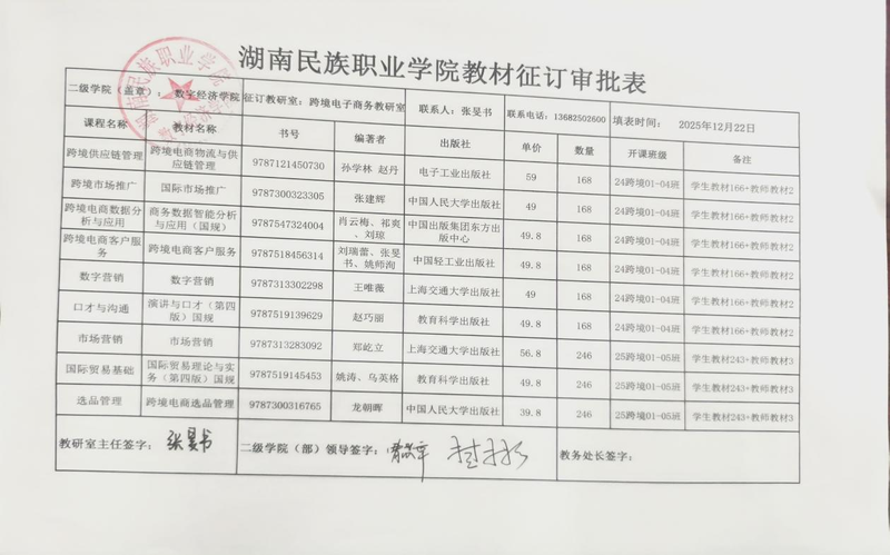 bevictor伟德官网2026年上学期教材征订汇总表公示